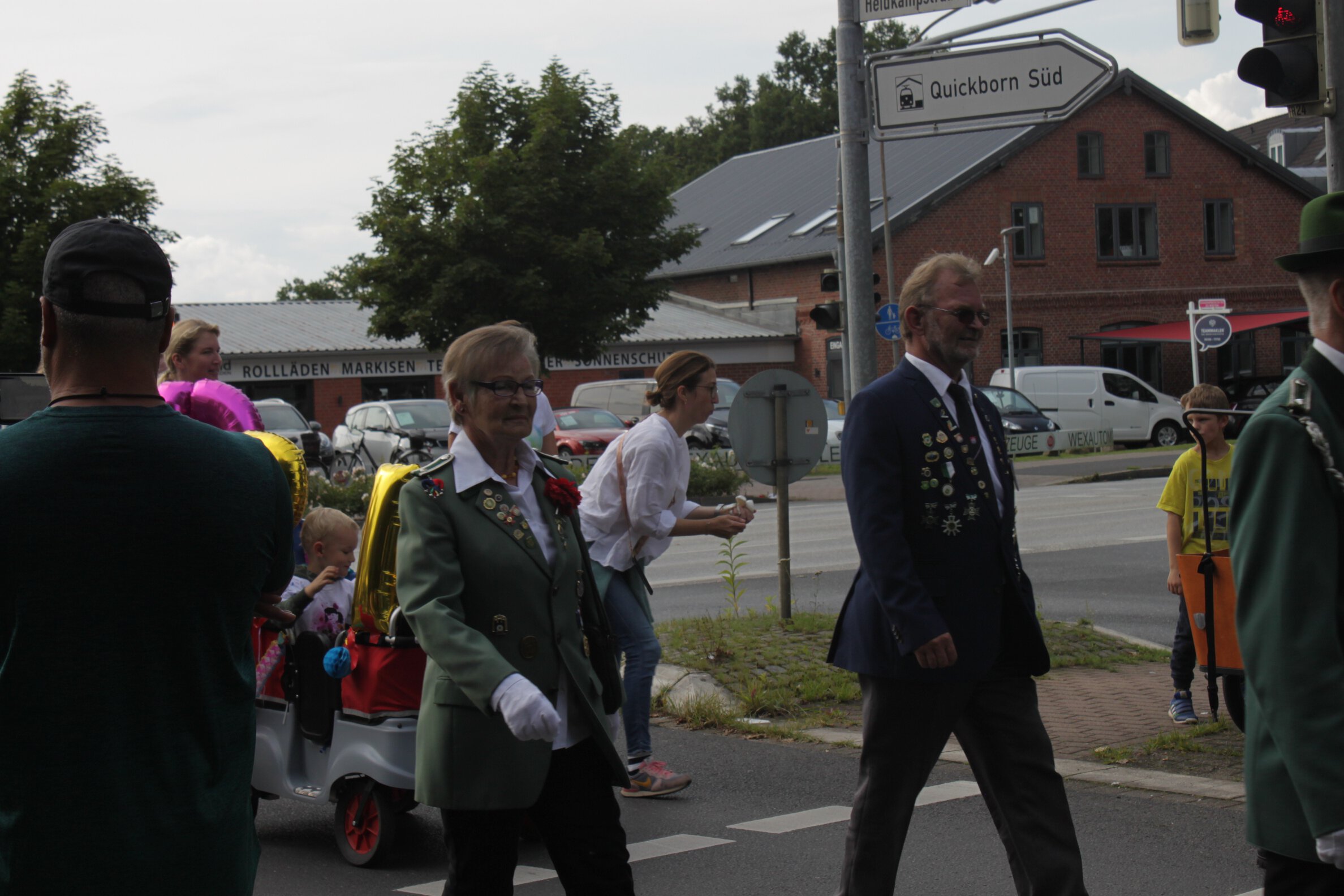 Der Schützenverein Quickborn-Renzel erhält alljährlich Unterstützung durch Partnervereine und aus dem Kreis Pinneberg, die sich auf dem großen Parkplatz des Lebensmittel-Discounters mit dem gelb-blauen Logo an der Kieler Straße sammelten.